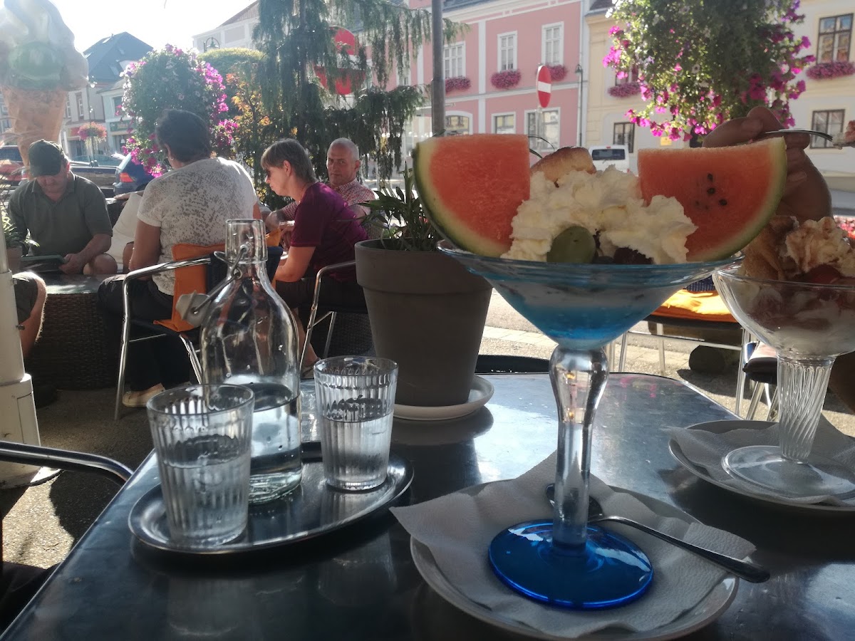 Ein Hatscha Berg und Tal, mit Gourmet Finale. Code: TopflApfl- Strudel, am Hauptplatz 1, Café Fenz. Danke dafür!