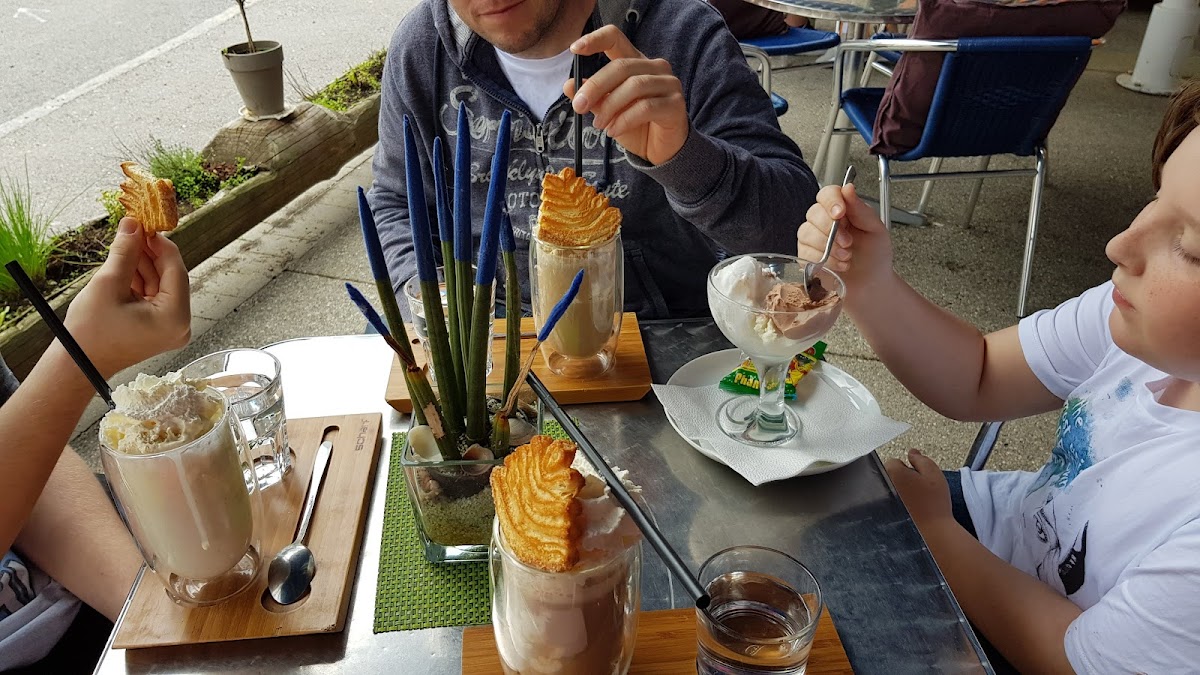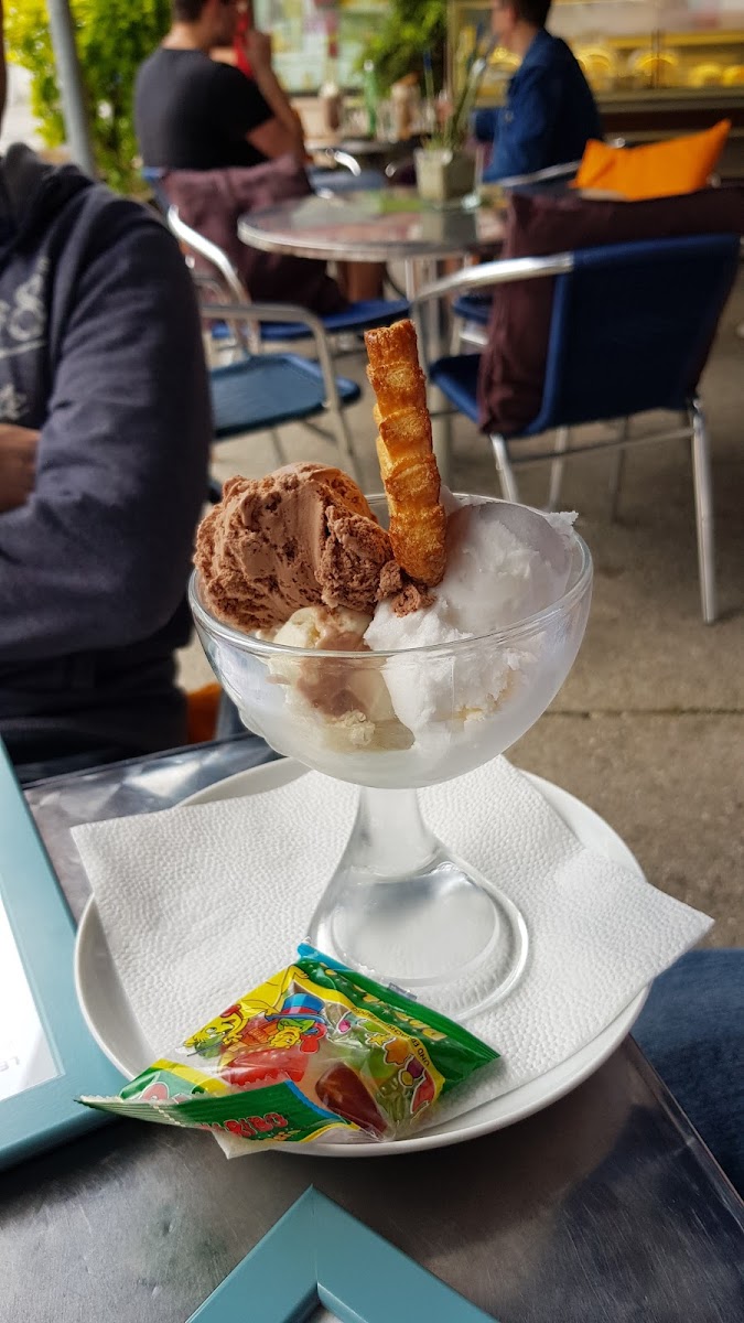 Ausgezeichnetes Eis, tolle Aussicht, ein ganz lieber Besitzer und auch von der Auswahl sowie von dem liebevoll angerichteten Essen/Trinken war ich begeistert. Eine Wasserflasche um den Durst zu stillen wurde kostenlos an den Tisch gebracht.